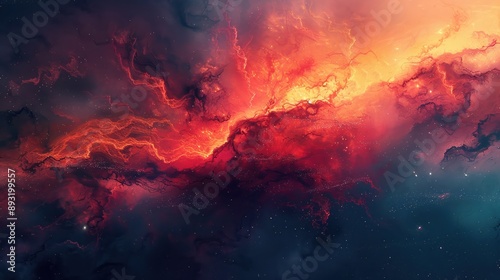 Vivid cosmic nebula with bright orange and red hues against a dark starry background, depicting the beauty and mystery of the universe.