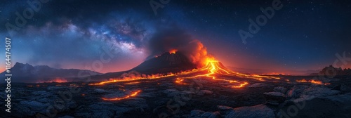 volcano, eruption, lava, night, sky, star, galaxy, cosmic, space, fiery, hot, red, orange, glow, dark, mountain, landscape, nature, dramatic, powerful, intense, heat, molten, rock, flow, stream, earth, planet, astronomic, celestial, universe, magma, volcanic, fire, energy, power, awesome, spectacular, breathtaking, phenomena, glowing, darkness
