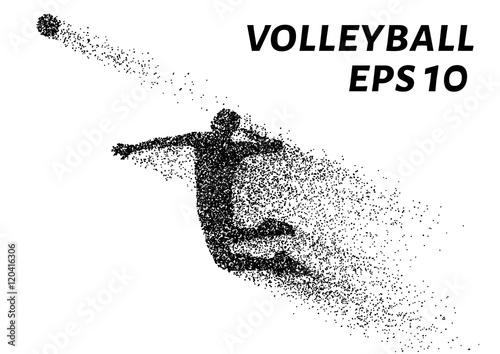 Volleyball, particle divergent composition, vector illustration. Silhouette of a volleyball from particles.