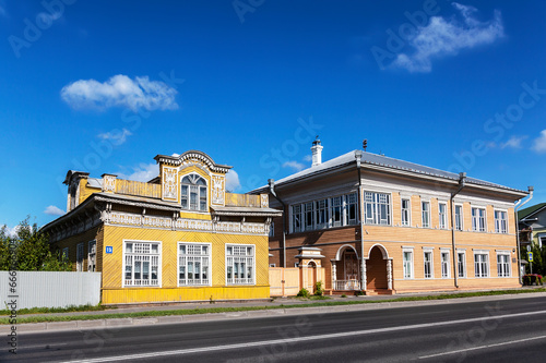 Vologda. View of the houses - monuments of wooden architecture: the house of Uncle Gilyay (Zernov 's house) and the house of Chernoglazov on Chernyshevsky Street. Russia