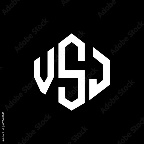 VSJ letter logo design with polygon shape. VSJ polygon and cube shape logo design. VSJ hexagon vector logo template white and black colors. VSJ monogram, business and real estate logo.