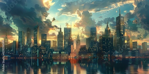 Vue d'une ville moderne avec des buildings style Marvel comics