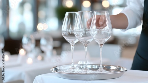 Waiter carrying wine glasses on a tray