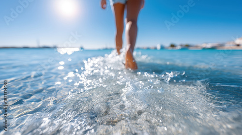 ocean, water, beach, summer, sunlight, wave, walking, shore, nature, relaxation, vacation, clear, horizon, leisure, travel, scenery, blue, sand, enjoyment, calmness, lifestyle, happiness, freedom, exploration, adventure, serenity, environment, coast, beauty, warmth, fun, splash, activity, peaceful, scenic, landscape, barefoot beach, moment, joy, connection, family, life events