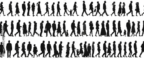 silhouette, people, walking, crowd, human, group, man, woman, adult, children, figure, shadow, profile, urban, street, movement, business, casual attire, isolated, black, vector, collection, design, pattern, illustration, woman, family, model, fashion, person, children, boy, body, icon, sport, chinese, japanese
