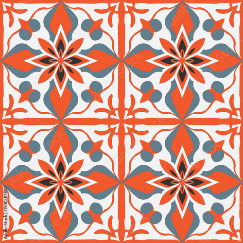Wallpaper seamless pattern, geometric floral pattern in orange tones, urban quiet style mood, vector pattern.