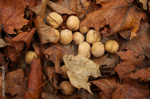 autumn, leaf, brown, leaf, fall, nature, food, season, tree, yellow, natural, forest, walnut, dry, texture, foliage, closeup, nut, dried, mushroom, ingredient, orange, green, organic, plant