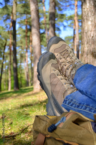 hike, hike, forest, outdoors, walking, spring, lie, repose, rest, break, chill, relax, avocation, nature, forest floor, backpack, recreation, relaxation, recreation