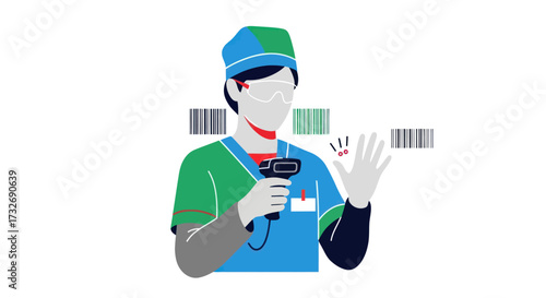 men at work, scanning, barcode, scanner, technology, logistic, warehouse, inventory, person, employee, operator, uniform, industry, work, job, business, code, reader, device, hand-held, checking, verification, identification, datum, management, stock, shipping, delivery, distribution, commerce, retail, product, package, futuristic, automation, efficiency, system, digital, electronic