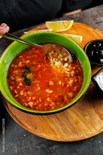 soup, vegetable, meat, bowl, wooden board, lemon, olive, meal, cosy, stir, hand, dish, ingredient, warm, broth, cookery, favor, cooking, comfort, dining, teaspoon, green, savoury, hearty, kitchen, garnish, spoon, slice, plate, nourishment, herb, dinner, lunch, serving, receipe, fresh, eat, warmup, food, wholesome, homemade, filling, traditional, culinary, table