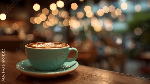 Warm cappuccino in a ceramic cup with latte art, placed by a window in soft sunlight. Cozy coffee atmosphere perfect for National Cappuccino Day. Image created by AI.