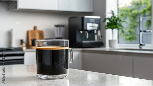 Warm Inviting Glass of Coffee on Kitchen Counter Radiating Cozy Vibes