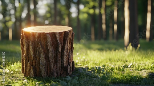 stump, tree, forest, light, warm, nature, detail, texture, grass, wood, log, scenery, sunlight, environment, peaceful, background, greenery, natural, seasonal, soft, tranquil, vibrant, foliage, summer, rustic, wildlife, serene, calmness, bark, earth, shadow, growth, round, fresh, flora, clear, landscape, ecology, scenic, bright, ambience