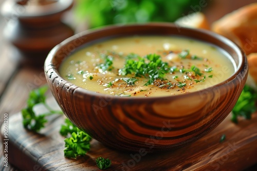 soup, vegetable, homemade, warm, rustic, bowl, wooden, table, fresh, herb, garnished, comfort, food, meal, dining, kitchen, vegetarian, healthy, delicious, broth, parsley, receipe, ingredient, culinary, cooking, preparation, wholesome, traditional, life events, savoury, seasonal, lunch, dinner, inviting, cosy, satisfying, styling, vibrant, nourishment, spice, art, sharing, engaging, flavorful, hearty, family, bread, natural