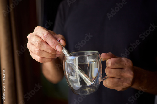 stirring, cup, tea, hand, herbal, glasses, ritual, relaxation, evening, homemaker, portrait, cosy, domestic, soft, steam, amber, liquid, clear, vessel, closeup, finger, stirrer, motion, dim, indoor, kitchen, counter, morning, moment, mindful, sipping, warm, beverage, subtile, aroma, rising, tendril, gentle, caress, solitary, pause, slow, routine, sharpened, textured, surface, gold, glow, reflective