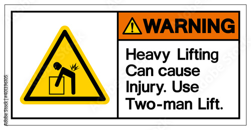 Warning Heavy Lifting can cause injury Use Two Man Lift Symbol Sign, Vector Illustration, Isolate On White Background Label .EPS10