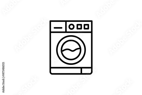 washing, machine, laundry, appliance, household, clean, clothes, laundered, home, domestic, equipment, modern, technology, white, black, line, icon, vector, illustration, design, symbol, water, circle, buttons, square, front, automatic, electrical, textile, daily