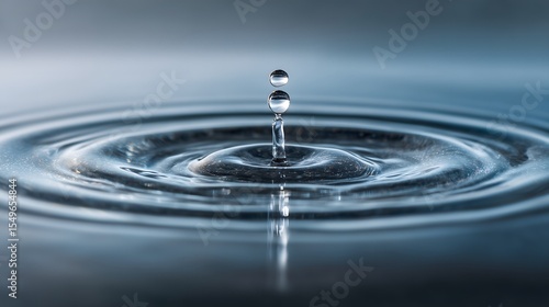 Water Drop Falling into Calm Surface with Ripples