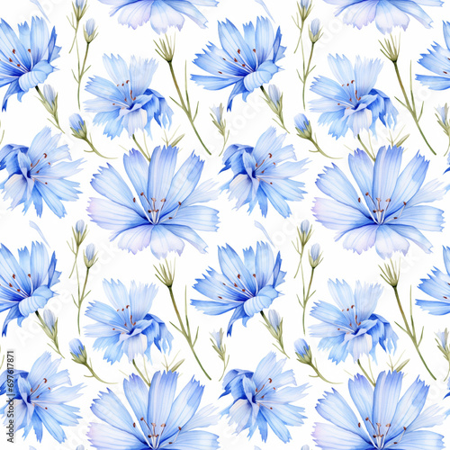 watercolor, chicory, flower, seamless, pattern, seamless pattern, tile, endless, aquarelle, blue, flower, blooming, white, background, fresh, watercolor, drawing, generative, ai, illustration, floral, plant, summer, colours, blossom, hot drink, botany, bloom, natural, herb, violet, medicals, white background, medicine, wildflower, wild, stem, herbaceous, healthy, asteraceae, endive, root