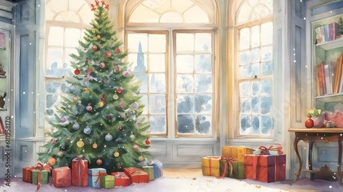 watercolor, christmas, tree, gift, living room, background, room, interior, home, house, winter, celebration, living, holiday, gift, merry, decoration, december, design, christmas, decor, festive, fireplace, year, new, decorated, traditional, season, modern, cosy, warm, light, window, apartment, nobody, style, beautiful, stylish, present, happy, magic, indoor, object, light, fire