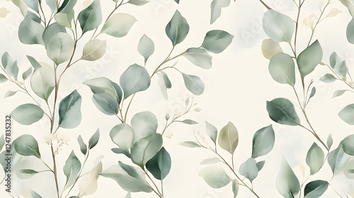 watercolor, eucalyptus, leaf, branch, pattern, green, grey, beige, cream, white, background, floral, botanical, nature, plant, design, texture, art, illustration, painting, subtile, soft, delicate, elegant, romantic, serene, calm, peaceful, minimalist, simple, stylish, modern, contemporary, aesthetic, pretty, beauty, organic, repeating, seamless, image, visual, artwork