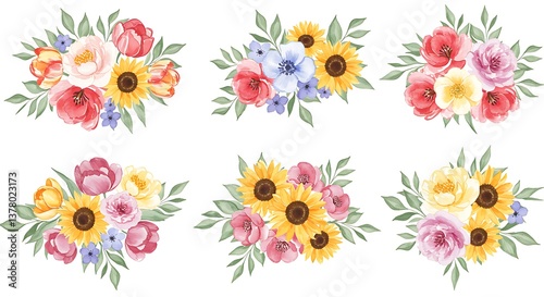 Watercolor flower bouquets isolated on a white background