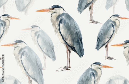 Watercolor Heron Pattern Elegant Bird Seamless Design for Fabric, Wallpaper, and More