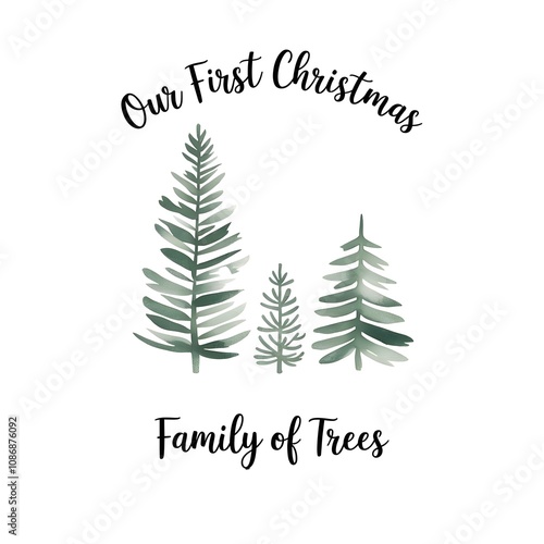 Watercolor illustration Christmas green trees. Three distinct trees are arranged, sentimental keepsake. heartwarming gift card