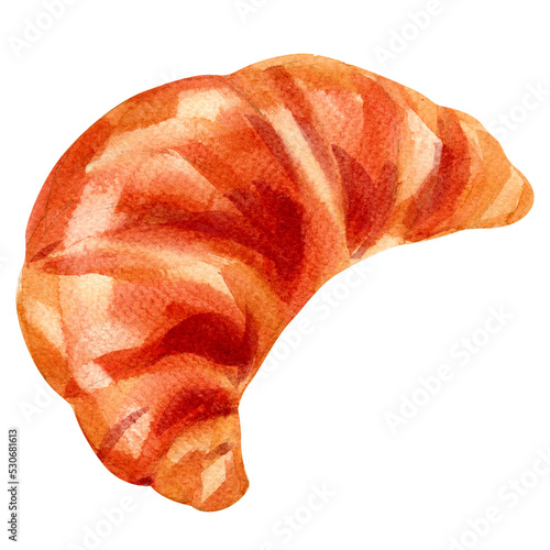 Watercolor illustration of croissant isolated on white background.