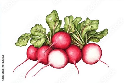 watercolor, hand-painted, nature, white background, artistic, botanical, organic, natural, painting, healthy, fine art, radish, food, vegetable, red, isolated, root, fresh, radish, bunch, leaf, vegetarian, raw, vegetable, ingredient, white, ripe, garden, salad, freshness, plant, agriculture, leaf, nourishment