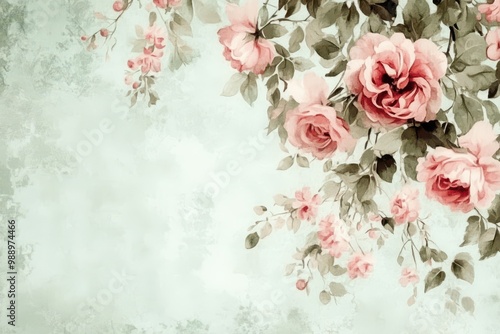 watercolor, painting, pink, rose, rose, green, leaf, leaf, blue, light, background, floral, blossom, bloom, flower, flower, art, artwork, delicate, romantic, vintage, soft, elegant, beauty, nature, botanical, pattern, design, illustration, texture, artistic, style, abstract, impressionistic, pastel, subtile, whimsical, dreamy, gentle, feminine