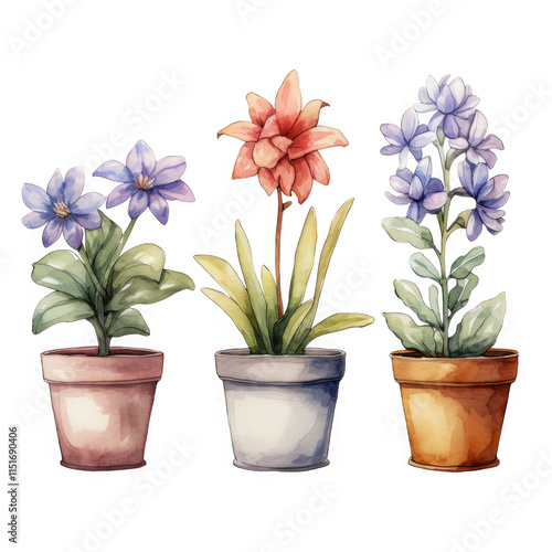 watercolor, painting, flower, plant, potted, bloom, blossom, flower petals, leaf, stem, root, dirtied, terracotta, pot, ceramic, garden, home, decor, art, illustration, colourful, vibrant, purple, blue, red, orange, pink, green, brown, beige, nature, spring, summer, growth, life, beauty, delicate, elegant, pretty, artistic, image, picture, design, botanical