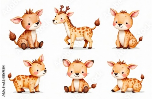 Watercolor style set, BOHO collection of playful cute children's toys, ideal for children's room, white background