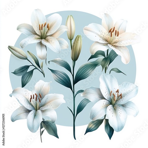 Watercolor Vector Illustration of White Lilies Floral Decoration Art Collection