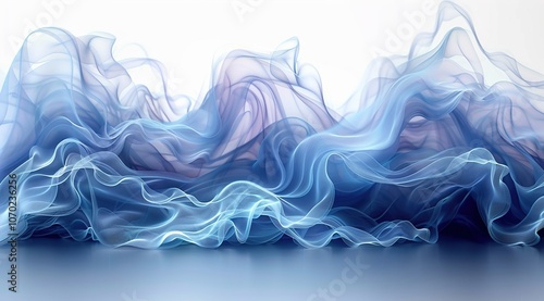 Wave. Blue, white abstract dreamy wave flowing fabric, smoke.