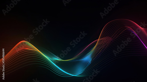 Wave-shaped neon lines on black background. Generative AI
