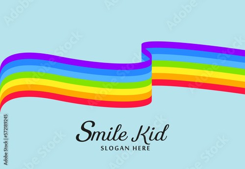 Waving rainbow ribbons flag, banner, art, celebration concept of Kid, school design
