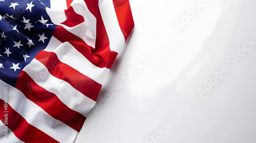 wavy USA flag background over white background with copy space