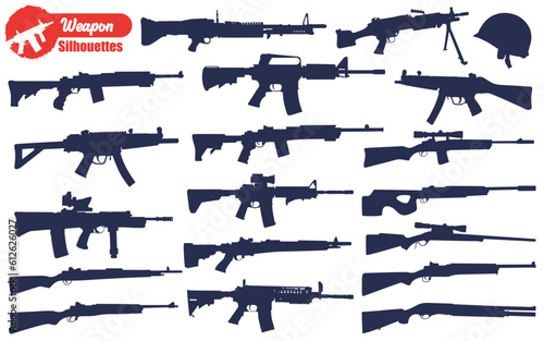 Weapon or Gun Silhouettes Vector Illustration
