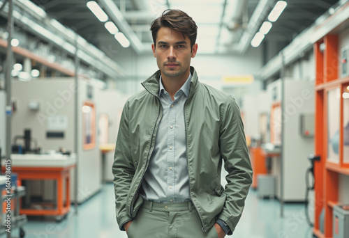 designer, technology, textile, manufacturing, smart, wearable, innovation, fashion, modern, environment, creativity, industry, professional, male, clothing, apparel, style, workshop, production, engineering, concept, development, outfit, casual attire, confident, workspace, facility, advanced, equipment, design, entrepreneur, vision, trend, material, craftsmanship, quality, aesthetic, research, collaboration, future, solution