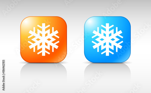 snowflake, snow, flake, winter, season, seasonal, weather, climate, forecast, forecasting, meteorology, meteo, nature, icon, buttons, pictogram, signs, symbol, silhouette, web, design, element, template, shape, vector, illustration, square, rounded, orange, blue