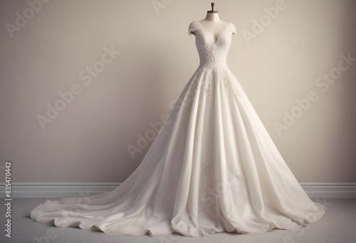 wedding dress on minimal pastel background, with simple style