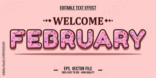 Welcome february, typography word art illustration, poster, editable text effect, file EPS