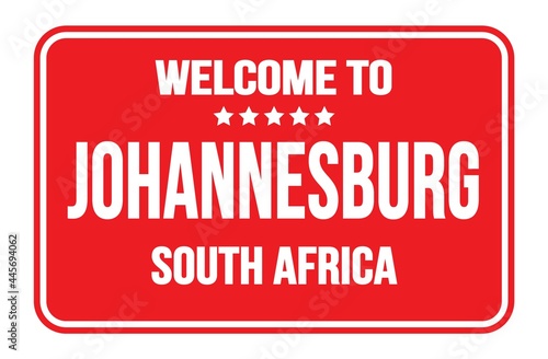 WELCOME TO JOHANNESBURG - SOUTH AFRICA, words written on red street sign stamp