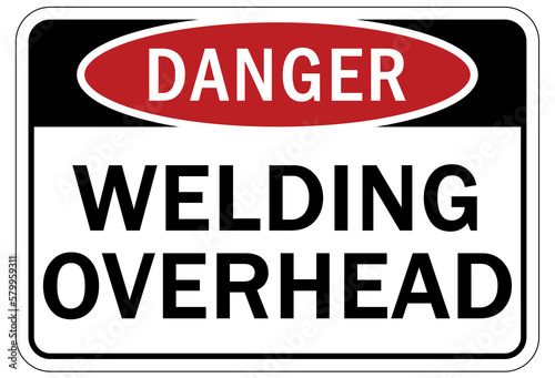 Welding hazard sign and labels welding overhead