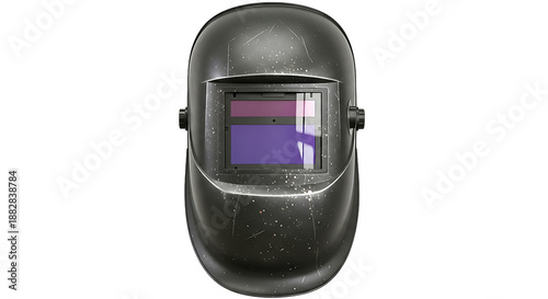 welding, helmet, safety, gear, equipment, protection, work, industrial, manufacturing, engineering, purple, lens, black, speckled, texture, knob, side, view, detailed, weld, metal, fabrication, construction, mechanical, men at work, job, site, factory, industry, heavy