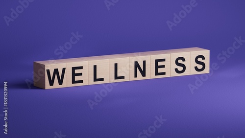 Wellness text word on wooden cubes.3D rendering.