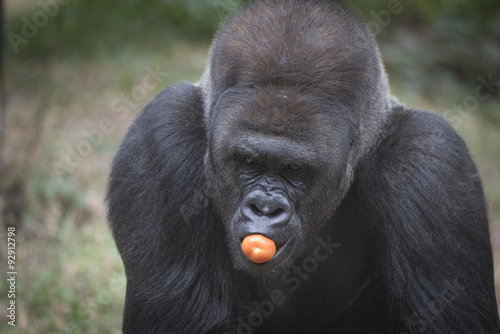 Western Lowland Silverback with Tomato in his mouth