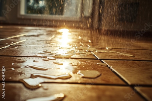 sunlight, wet, floor, tile, raindrop, water, tile, texture, droplet, sparkle, rain, surface, kitchen, interior, architecture, home, glistening, shiny, maintenance, ceramic, bathroom, cleaning, damage, decor