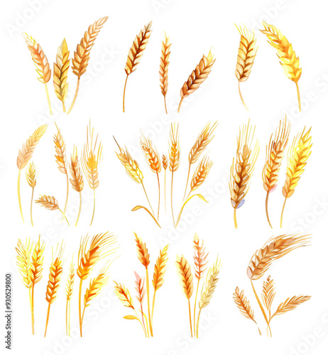 wheat, agriculture, grain, field, plant, cereal, crop, nature, food, corn, bread, barley, harvest, vector, ear, gold, farm, rye, summer, gold, yellow, ripe, natural, seed, illustration